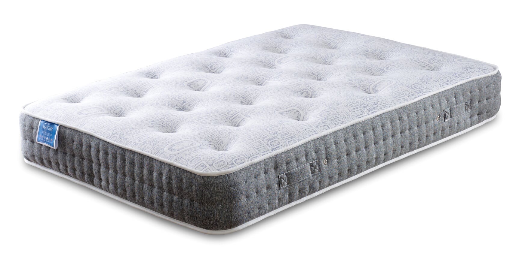 The Matrix bed has a real luxurious feel to it. With luxury fillings and luxurious knitted fabric, this wonderful bed has a double sided mattress with a comfort rating of 5 (Firm). With a jumbo drawer beneath the bed and a wide range of colours and finishes, this bed is classy, comfortable for all seasons, and has plenty of storage space beneathfor all your things.The mattress is also an Aistream mattress.